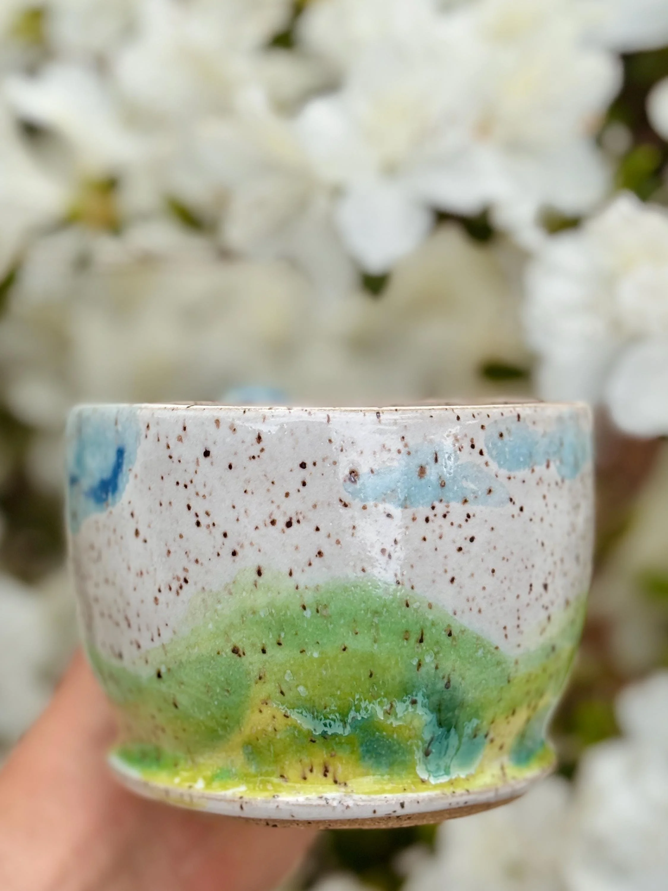 - Wheel Thrown Meadow Mug - Hand-painted with glazes and celadons - Food-safe, Dishwasher-safe, and Microwave-safe - To see more of my work, visit my etsy store or my website: Hazelirisart.com