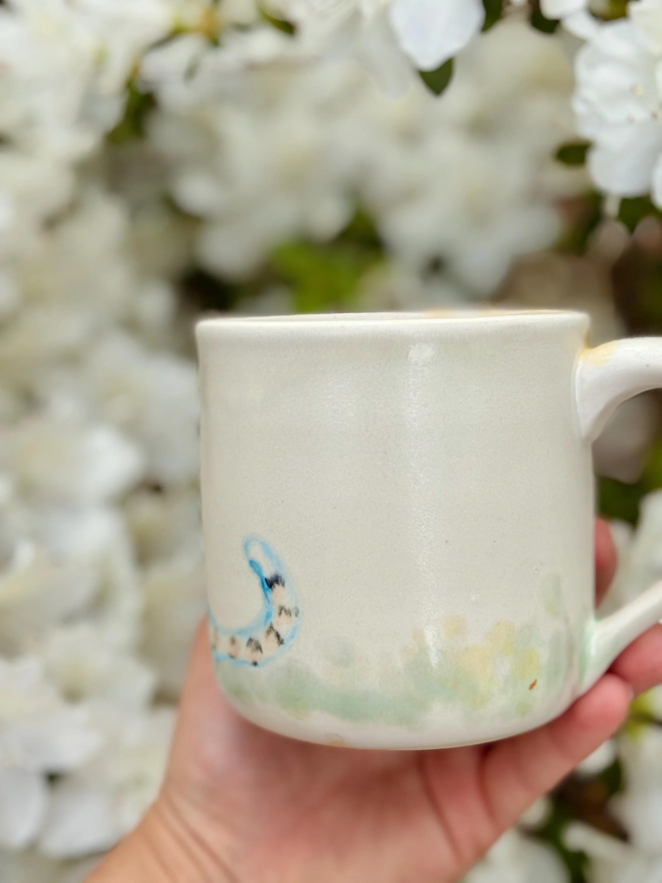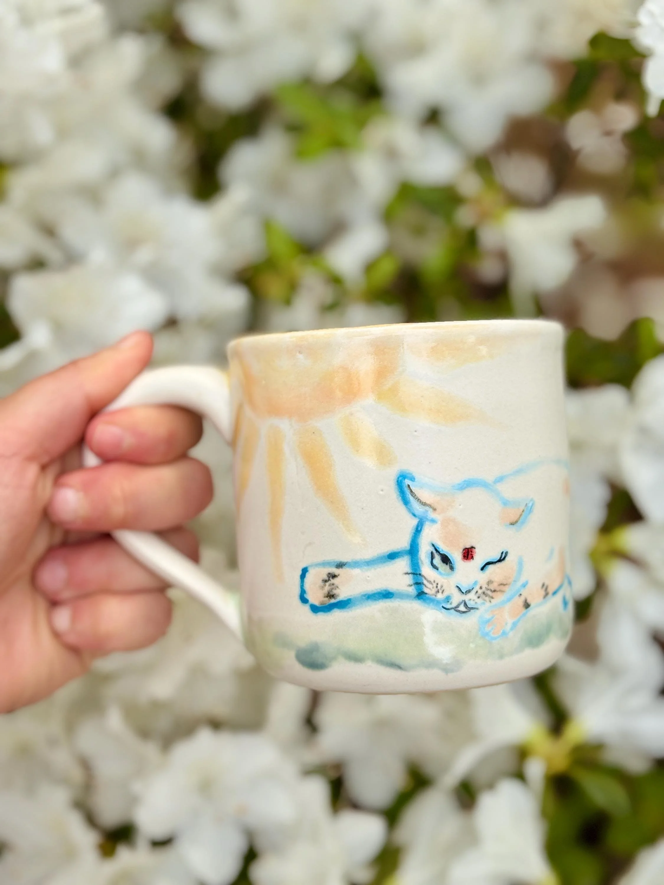 - Wheel thrown and hand-painted mug - This blue cat does not have a care in the world! Basking in the warm sun and hanging out with his BFF ladybug. - This piece is entirely unique and is a 1 of 1 - Food-safe, Dishwasher-safe, and Microwave-safe - To see more of my work, visit my etsy store or my website: Hazelirisart.com