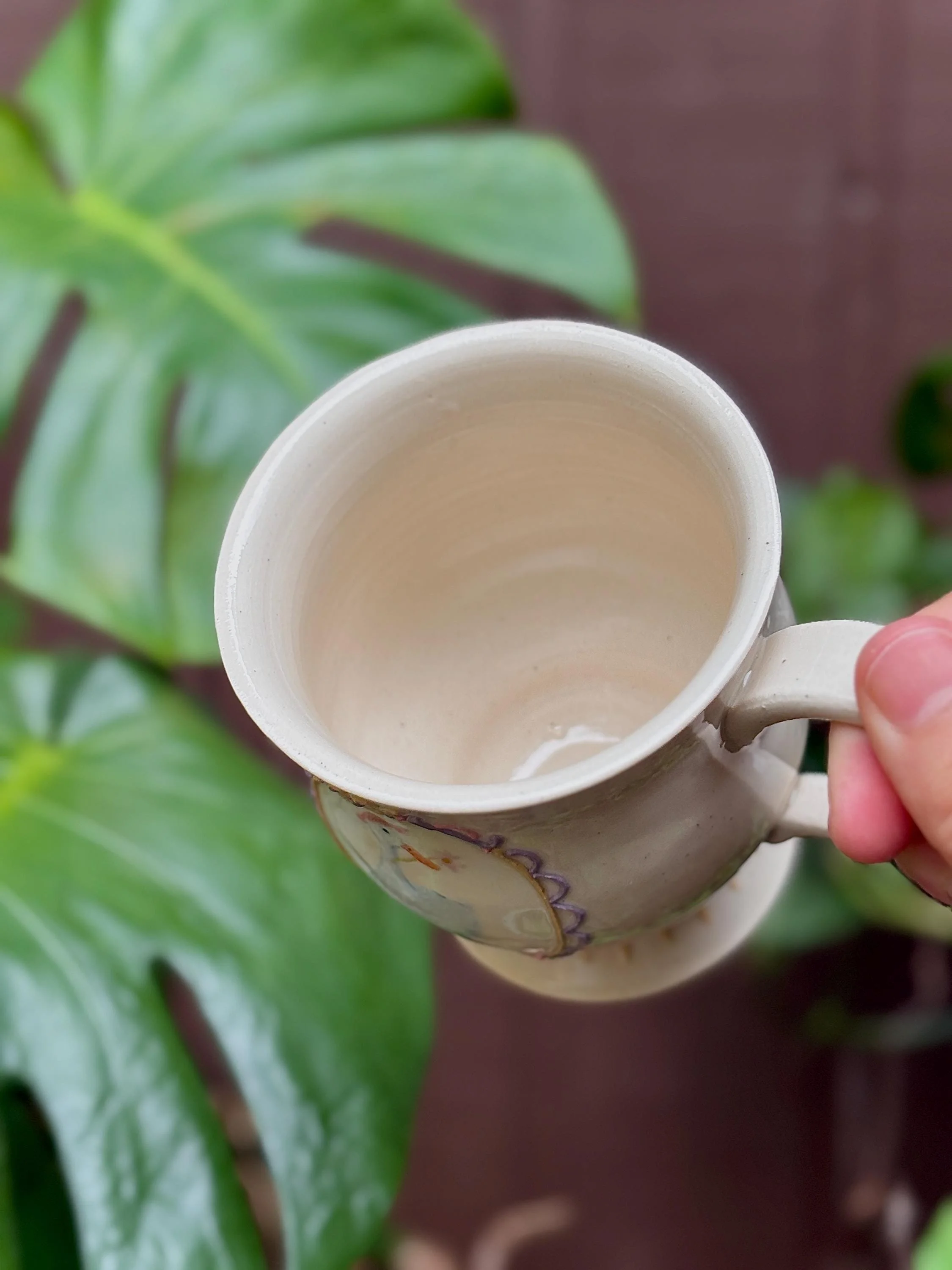 Shop › Hand-Painted Duck Ceramic Mug: Whimsical Fairytale Teacup Image 1 of 4 Image 2 of 4 Image 3 of 4 Image 4 of 4 Hand-Painted Duck Ceramic Mug: Whimsical Fairytale Teacup $60.00 sold out - Wheel thrown, hand-painted, ceramic mug or tea cup- Holds appx. 8 ounces- Each cup is made by me from beginning to end and is completely unique to itself.- This piece has 1 frame with a hand-painted trout and bubbles inside of it- Glossy Clear glaze to finish it off and protect the painting.- Dishwasher safe, microwave safe, food safe. Sold Out Added! - Wheel thrown, hand-painted, ceramic mug or tea cup- Holds appx. 8 ounces- Each cup is made by me from beginning to end and is completely unique to itself.- This piece has 1 frame with a hand-painted trout and bubbles inside of it- Glossy Clear glaze to finish it off and protect the painting.- Dishwasher safe, microwave safe, food safe.